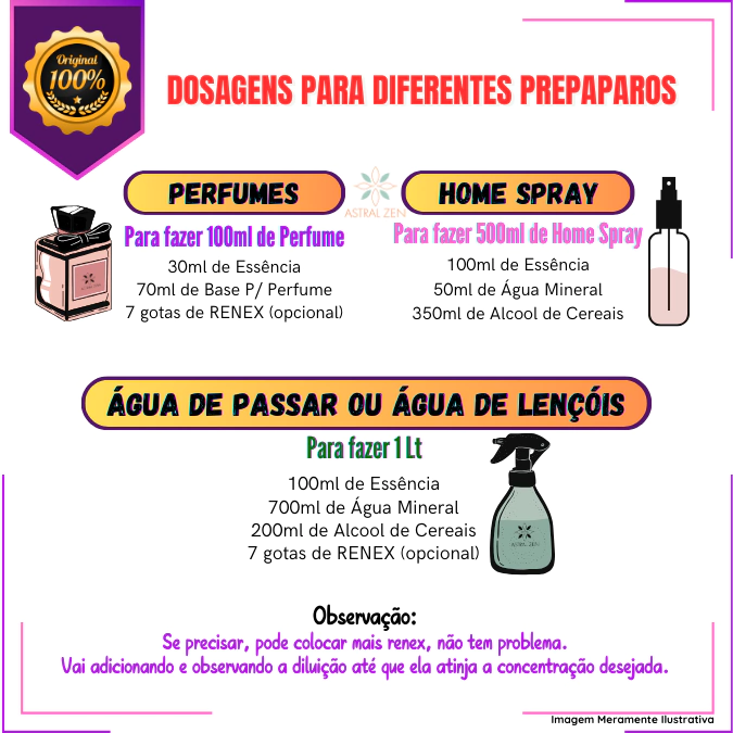 Recomenda-se seguir as instruções de diluição fornecidas pela marca para obter os melhores resultados com as essências Vollmens.